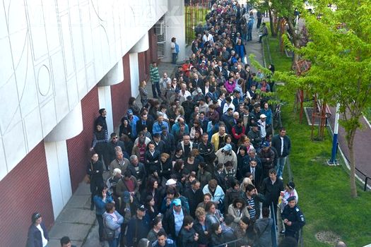 În Bucureşti, aproximativ 200 de persoane aşteptau, vineri dimineaţă, întâlnirea cu angajatorii înainte ca Bursa locurilor de muncă să înceapă. Numărul persoanelor a continuat apoi să crească, formându-se coadă.