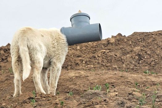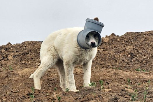 Câine cu capul blocat într-o țeavă, de zile întregi în Ilfov. Apel urgent al Protecției Animalelor