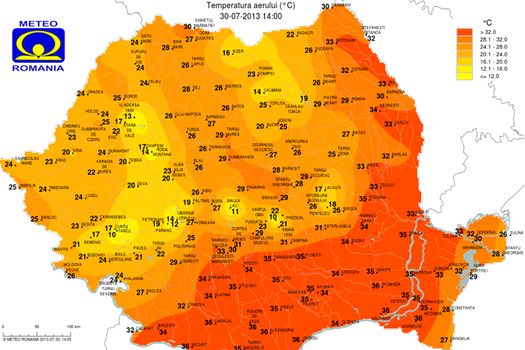 Prima pagină » Social » CANICULĂ în România. HARTA temperaturilor şi indicii de confort termic la ora 14.00