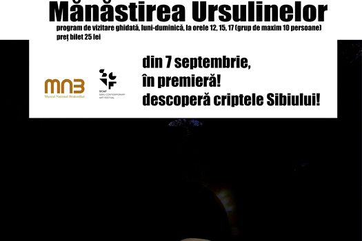Începând cu 7 septembrie 2024, vizitatorii SCAF – Festivalul Internaţional de Artă Contemporană de la Sibiu vor putea explora catacombele subterane ale Bisericii şi Mănăstirii Ursulinelor, singurele de acest tip cunoscute în oraş.