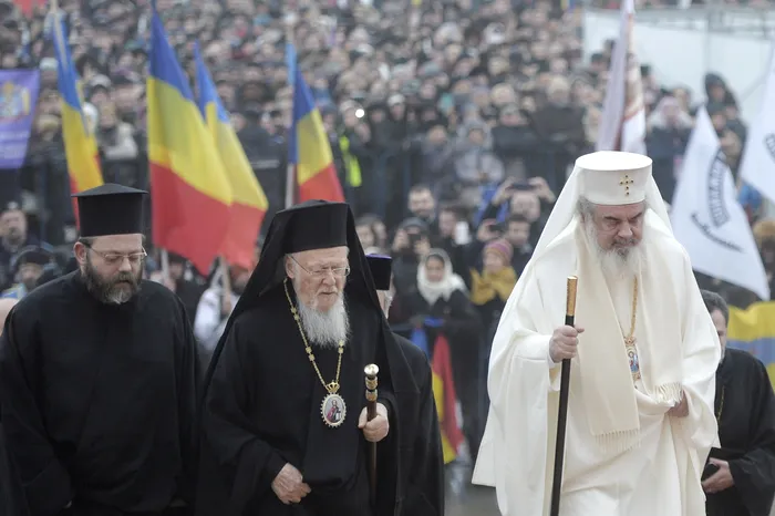 Patriarhul Bartolomeu al Constantinopolului (C) si patriarhul Daniel al Romaniei (D) sosesc la Catedrala Mantuirii Neamului, pentru a participa la slujba de sfintire a altarului lacasului de cult, duminica 25 noiembrie 2018, in Bucuresti. ANDREEA ALEXANDRU / MEDIAFAX FOTO