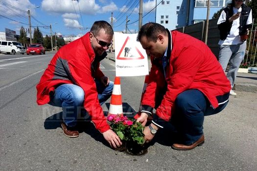 Consilierul local PNL Dan Tarcea a declarat corespondentului MEDIAFAX că liberalii au ales să planteze flori în gropile din asfalt exact în aceslaşi timp în care Emil Boc planta copaci.