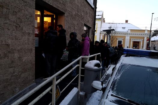 Oamenii s-au aşezat la coadă la Centrul de Informare pentru Cetăţeni (CIC) al Primăriei Cluj-Napoca din centrul oraşului, luni, încă de la primele ore ale dimineţii, pe un ger de -7 grade, deşi programul cu publicul începea la ora 8.00, pentru a-şi depune cererile în vederea obţinerii unui loc de parcare.