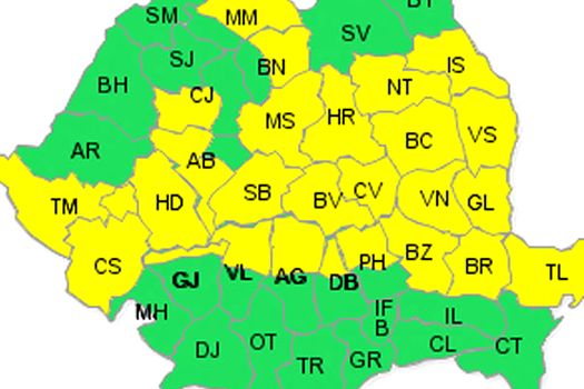 Astfel, rămân sub atenţionare, până la ora 23.00, Maramureş, Bistriţa-Năsăud, Cluj, Mureş, Alba, Hunedoara, Caraş-Severin, Timiş, Sibiu, Braşov, Harghita, Covasna, Vâlcea, Argeş, Dâmboviţa, Prahova, Buzău, Vrancea, Bacău, Neamţ şi Iaşi, cuprinse şi în atenţionarea de luni, la care se adaugă, de la ora 14.00 – Brăila, Tulcea, Galaţi şi Vaslui.
