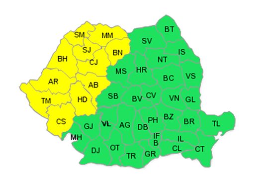 Vor fi afectate judeţele Caraş Severin, Timiş, Arad, Hunedoara, Alba, Cluj, Bihor, Sălaj, Satu Mare, Maramureş şi Bistriţa Năsăud.