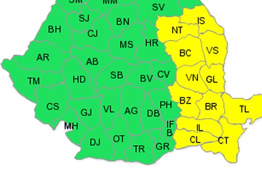 De asemenea, estul judeţul Tulcea, în special zona litoralului şi Delta Dunării, va fi sub avertizare cod portocaliu de viscol până la ora 12.00. În această zonă, vântul va atinge la rafală viteze de 70-90 de kilometri pe oră, viscolind şi troienind zăpada.