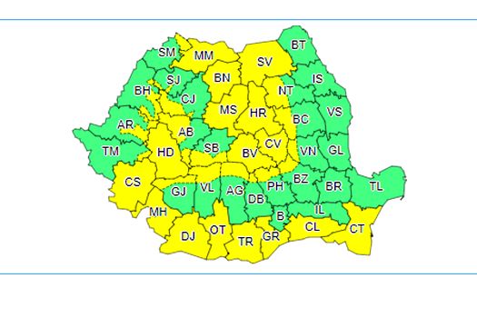 ANM a emis, sâmbătă, două atenţionări cod galben, fiind anunţate ninsori în zonele montane şi intensificări ale vântului în sudul Olteniei, al Munteniei şi al Dobrogei.