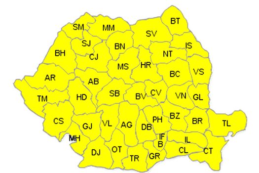 Codul galben va intra în vigoare de vineri, ora 08.00 şi va fi valabil până sâmbătă, la aceeaşi oră, în toate judeţele ţării.