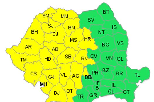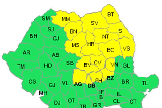 Codul galben a fost emis pentru judeţele Olt, Dolj, Mehedinţi, Gorj, Vâlcea, Argeş, Caraş-Severin, Timiş, Arad, Hunedoara, Sibiu, Braşov, Alba, Bihor, Cluj, Mureş, Harghita, Bistriţa-Năsăud, Maramureş, Sălaj, Satu Mare şi pentru o zonă restrânsă din Dâmboviţa.
