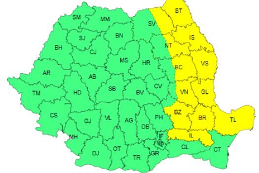 Vântul va sufla cu putere în mai multe regiuni ale ţării, atingând viteze de 40-50 kilometri pe oră în vest, est şi sud-est.