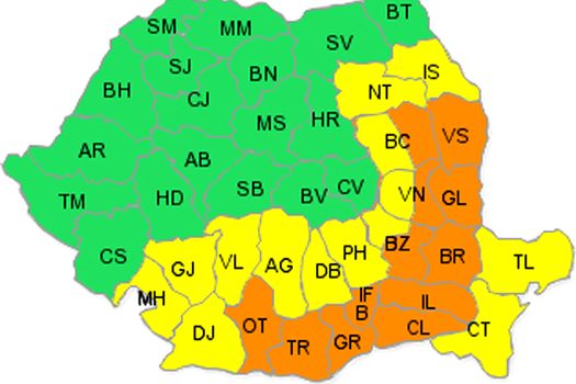 Sub cod galben de caniculă sunt judeţele Mehedinţi, Dolj, Gorj, Vâlcea, Argeş, Dâmboviţa, Prahova, Constanţa, Tulcea, Neamţ şi Iaşi.