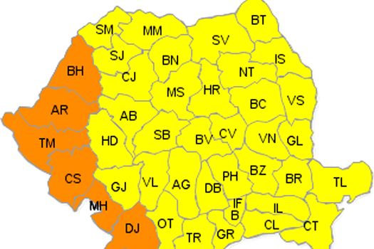 Meteorologii au emis o avertizare cod portocaliu de caniculă şi disconfort termic pentru judeţele Bihor, Arad Timiş, Caraş-Severin, Mehedinţi şi Dolj, unde duminică şi luni vor fi temperaturi de 38-39 de grade, iar restul ţării va fi în cele două zile sub avertizare cod galben.