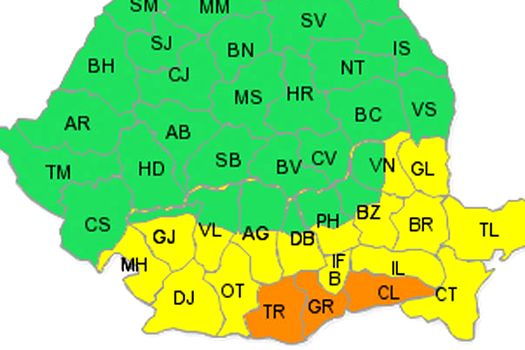 Astfel, vor fi sub cod galben de caniculă judeţele Mehedinţi, Dolj, Gorj, Vâlcea, Olt, Argeş, Dâmboviţa, Prahova, Ilfov, inclusiv Bucureşti, Ialomiţa, Buzău, Brăila, Vrancea, Galaţi, Tulcea şi Constanţa.