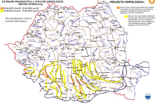 Institutul Naţional de Hidrologie şi Gospodărirea Apelor (INHGA) a emis o nouă avertizare hidorologică, pentru intervalul miercuri ora 16.00 – vineri, ora 18.00.