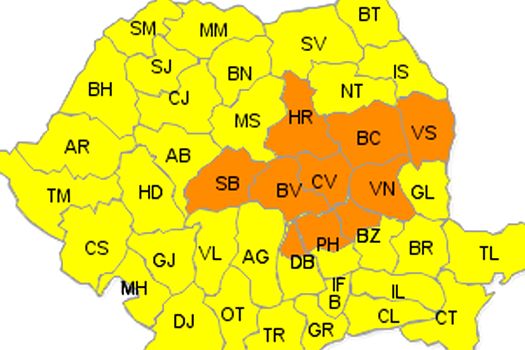 Administraţia Naţională de Meteorologie avertizează că în judeţele Sibiu, Braşov, Covasna, Harghita, Vrancea, Bacău, Vaslui, precum şi zona de munte de judeţelor Prahova, Buzău şi Dâmboviţa ploile vor fi însoţite de grindină şi de vânt puternic, cantităţile de apă depăşind local 40 l/mp sau izolat 80l/mp.