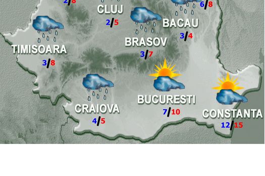 Cerul se va acoperi treptat şi, îndeosebi spre seară şi noaptea, temporar va ploua slab. Vântul va sufla slab şi moderat. Temperatura maximă se va situa în jurul valorii de 9 grade, iar cea minimă va fi de 6…7 grade. Dimineaţa, vor fi condiţii de ceaţă.