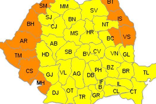 În judeţele Satu Mare, Bihor, Arad, Timiş, Caraş-Severin, Mehedinţi, Botoşani, Iaşi, Bacău şi Vaslui, unde va fi instituit cod portocaliu de caniculă, vor fi temperaturi maxime de 37 – 38 de grade, iar disconfortul termic va fi deosebit de accentuat.