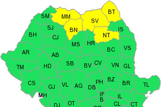 Şi Administraţia Naţională de Meteorologie a prelungit codul galben de ploi pentru judeţele Suceava, Botoşani, Maramureş şi zona de munte a judeţelor Neamţ şi Bistriţa-Năsăud, începând de vineri, ora 12.00 şi până sâmbătă la prânz.