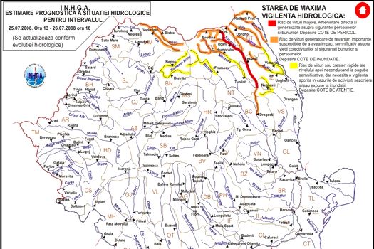 "Codul galben de inundaţii emis anterior rămâne valabil, urmând să actualizăm periodic datele, în funcţie de informaţiile pe care le vom avea", a mai spus Stanciu.