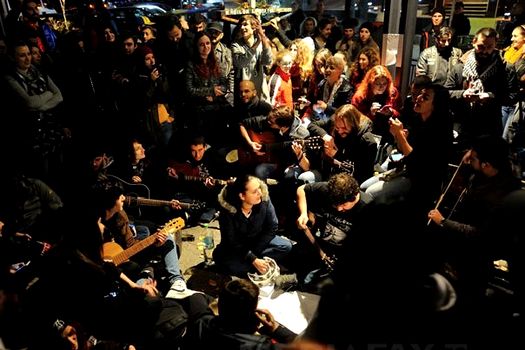 La trei săptămâni de la tragedia în urma căreia şi-au pierdut viaţa 58 de persoane, iar alte aproximativ 150 au fost rănite, tineri cu chitare au cântat în centrul Capitalei piese semnate de Valeriu Sterian, Leonard Cohen, Pink Floyd, Metallica, Phoenix şi Cargo.