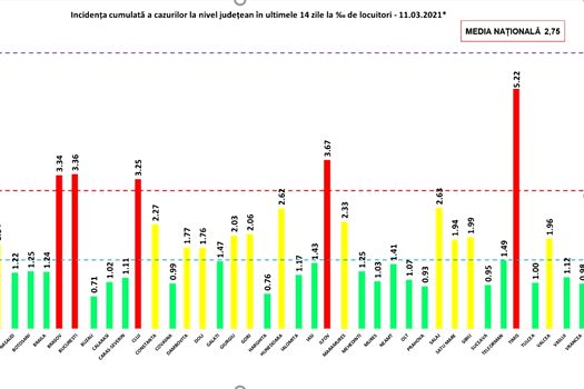 În intervalul 10.03.2021 (10:00) – 11.03.2021 (10:00) au fost raportate 96 de decese (47 bărbaţi şi 49 femei), ale unor pacienţi infectaţi cu noul coronavirus.