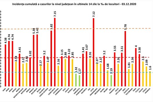 Coeficientul infectărilor cumulate la 14 zile, raportate la 1.000 de locuitori
