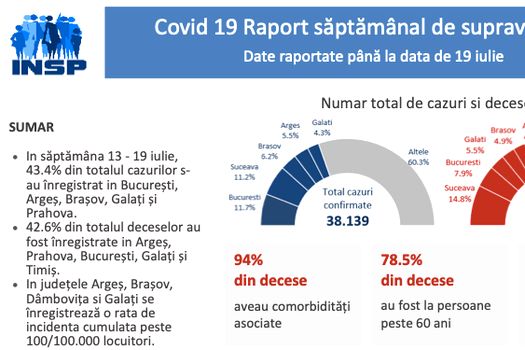 Institutul Naţional de Sănătate Publică (INSP) a realizat o analiză a datelor legate de noile cazuri de coronavirus din România, confirmate în perioada 20-26 iulie.