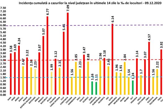 TOP judeţe la numărul de infectări noi cu SARS-CoV-2