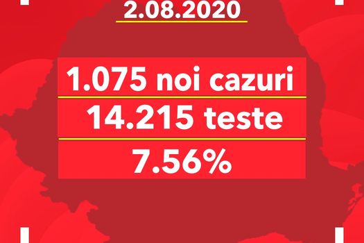 În urma testelor efectuate la nivel naţional, faţă de ultima raportare, au fost înregistrate 1.075 de cazuri noi de persoane infectate cu SARS – CoV – 2 (COVID – 19), acestea fiind cazuri care nu au mai avut anterior un test pozitiv. 34 de oameni au decedat. 14.215 de teste au fost efectuate în ultimele 24 de ore, în scădere faţă de zilele precedente.