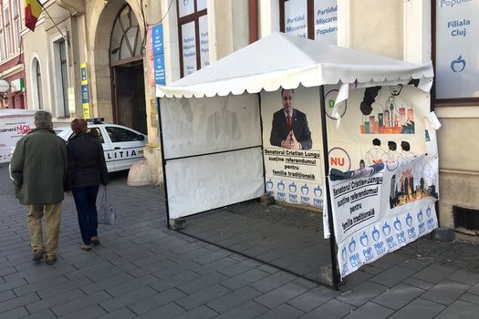 ”Cortul de campanie al PMP Cluj, care afişează mesaje de susţinere a referendumului pentru familie, a fost vandalizat. Pereţii cortului au fost tăiaţi cu lama pe partea stângă, iar peretele de pe partea dreaptă a fost distrus în totalitate. Joi am depus la IPJ Cluj – Secţia 1 Poliţie o plângere penală pentru distrugere”, a arătat Lungu.