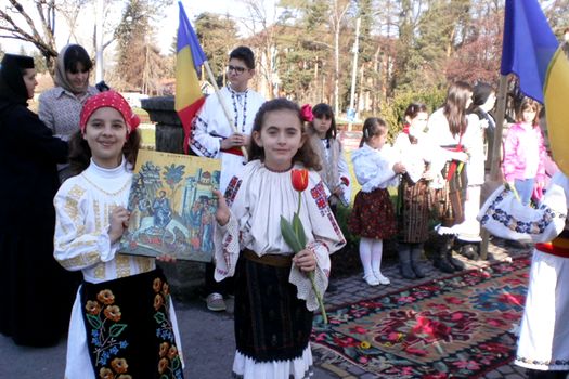 „I-am adus flori Înaltulului ca să le atingă. O floare o să i-o dau lui şi alta o pun la icoană, pentru Iisus, că e mare sărbătoare”, a adăugat o fetiţă în vârstă de cinci ani, îmbrăcată într-un costum popular, cu ie albă, scrobită şi plină de dantelă împletită cu igliţa.