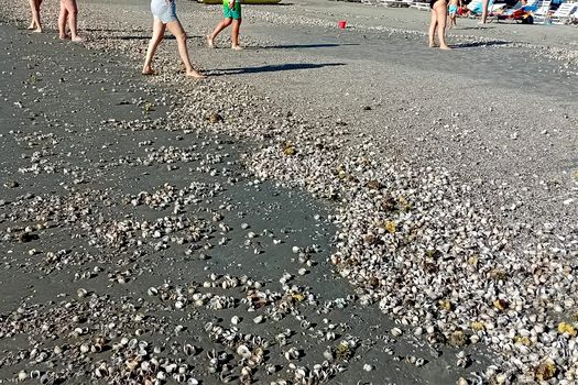 Covor de scoici şi melci pe plajele litoralului românesc, după furtuna de joi