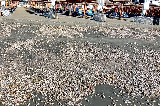Prima pagină » Social » Covor de scoici şi melci pe plajele litoralului românesc, după furtuna de joi