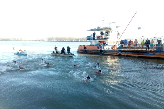 La finalul slujbei, ÎPS Casian a aruncat o cruce din lemn în apele Dunării, iar, conform tradiţiei, mai mulţi tineri au sărit în fluviu pentru a o recupera. Crucea a fost adusă la mal de un bărbat de 27 de ani.