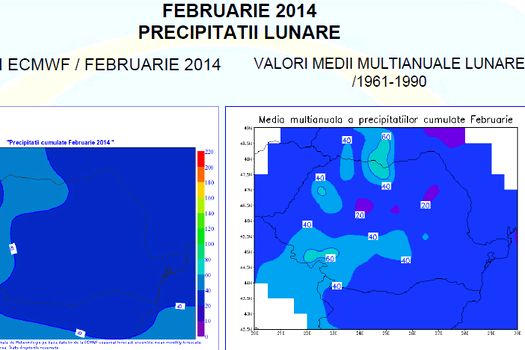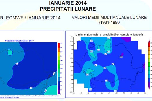 Cantităţile lunare de precipitaţii vor fi apropiate de mediile climatologice, posibil local deficitare în sud-vestul ţării.