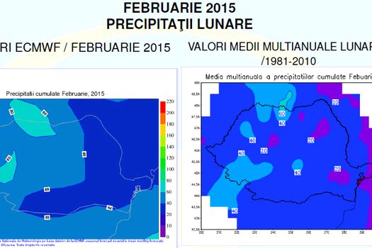 Precipitaţiile lunare vor fi apropiate de mediile multianuale în estul, sud-estul şi sudul ţării, iar în restul regiunilor acestea vor prezenta o tendinţă de excedent.