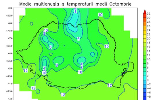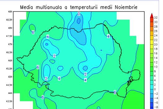 Temperaturile medii lunare vor inregistra valori peste norme în sud-est şi local în sudul şi vestul ţării, iar in rest valorile termice vor fi apropiate de mediile climatologice.