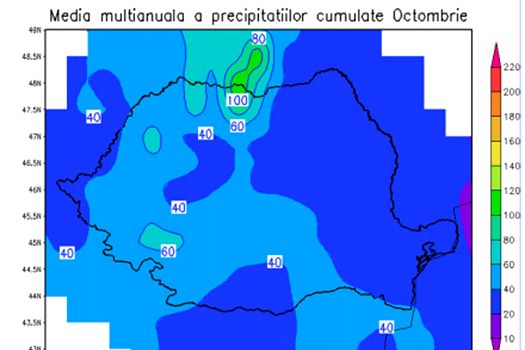 Cantitatile lunare de precipitatii se vor situa in limitele climatologice in majoritatea zonelor, local in centrul tarii fiind posibile valori peste medii, iar în sud sub norme.