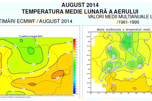 Regimul termic se va situa în limite apropiate de mediile multianuale în centrul şi nordul ţării şi peste normalul perioadei în restul teritoriului.