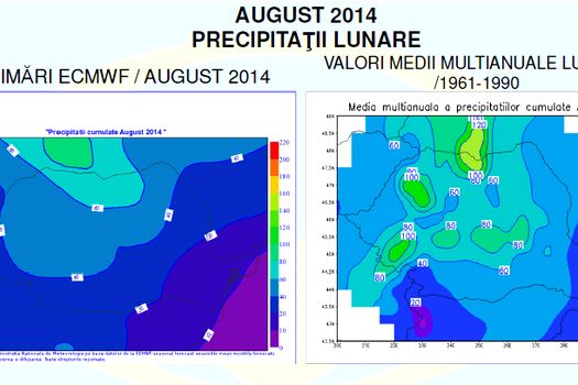 Cantităţile lunare de precipitaţii vor înregistra valori sub mediile climatologice în aproape toata ţara.