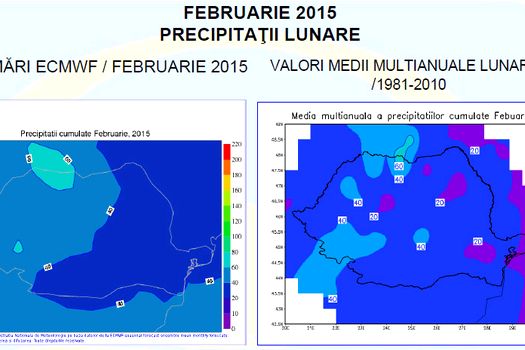 Precipitaţiile lunare se vor putea situa peste normalul climatologic în cea mai mare parte a ţării.