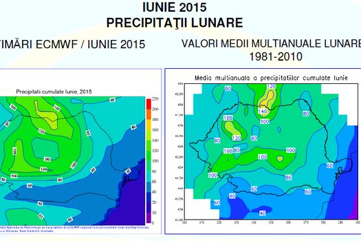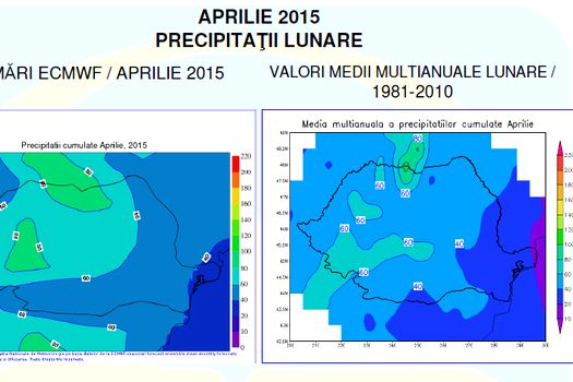 Cantităţile lunare de precipitaţii vor fi excedentare în cea mai mare parte a ţării, exceptând regiunile sud-estice şi sudice, unde se vor situa, în general, în apropierea mediilor multianuale.