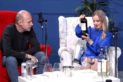 El a făcut o degustare de vin în orb pe înţelesul tuturor, alături de someliera din R. Moldova, Olivia Cucoş, prezentatoare TV şi moderatorul podcastului, Romeo Chiriac.
