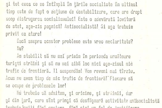 Cel de-al doilea document face referire la teleconferința din 17 decembrie 1989, prezidată de Nicolae Ceaușescu, în care liderul comunist vorbește despre presupusa implicare a „agenților străini” și a „cercurilor antisocialiste din Est și Vest” în revolta de la Timișoara.