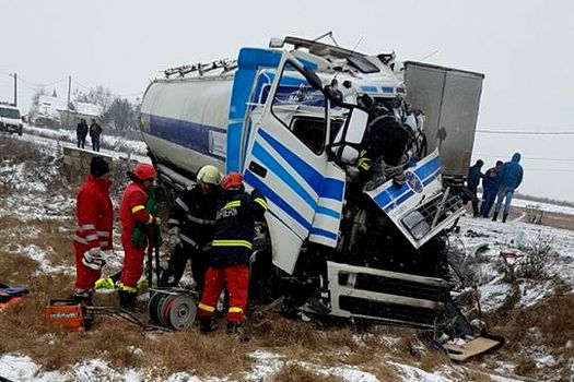 “ISU Timiş a fost anunţat despre producerea unui accident rutier în localitatea Dumbrava, pe DN 68 A, între două autotrenuri, unul fiind încărcat cu combustibil lichid uşor (păcură), iar celălalt cu cherestea. Pompierii militari au intervenit pentru descarcerarea persoanei, asigurarea măsurilor de prevenire a unui posibil incendiu şi balizarea zonei împreună cu un echipaj al Poliţiei. Nu a existat risc de explozie”, a arătat ISU “Banat”.