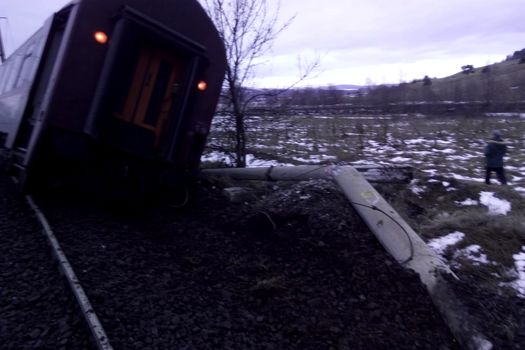 Potrivit primelor informaţii, trenul a lovit şi un stâlp de electricitate.