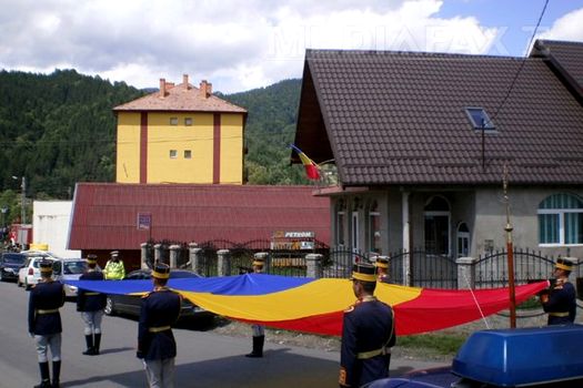 Regimentul de gardă şi protocol „Mihai Viteazu” din Bucureşti a dat onorul ministrului Apărării, iar şase ofiţeri au adus la catarg un tricolor de 24 de metri pătraţi, acesta fiind cel mai mare din judeţul Harghita.
