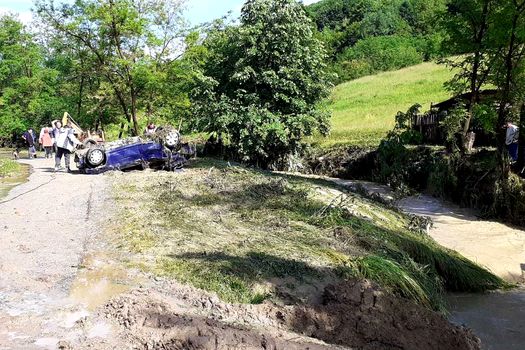 În localitatea Budeşti, sat Budeşti, o autotutilitară a rămasă blocată în albia pârâului Sâmnic, în urma încercării de a scurta drumul prin traversarea prin vad. Şoferul s-a autoevacuat, iar autoutilitara a fost îngropată de viitură.