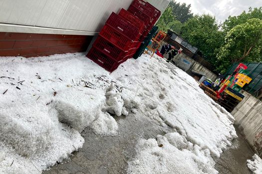 În localitatea Horezu, pe strada Tudor Vladimirescu, unui operator economic i-au fost afectate de inundaţii zona depozitului şi zona administrativă, pe o suprafaţă de aproximativ de 800 mp. Apa cu gheaţă a avut o adâncime de 5-10 cm. Pompierii din cadrul ISU Vâlcea au îndepărtat gheaţa formată prin acumularea grindinei din curtea operatorului, apoi s-au folosit motopompele.