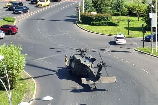 UPDATE 20:00 Elicopterul militar Black Hawk a fost mutat din Piaţa Charles de Gaulle. Elicopterul este tractat de un camion şi merge pe propriile roţi. La baza Mihail Kogălniceanu elicopterul va fi supus unei expertize tehnice.